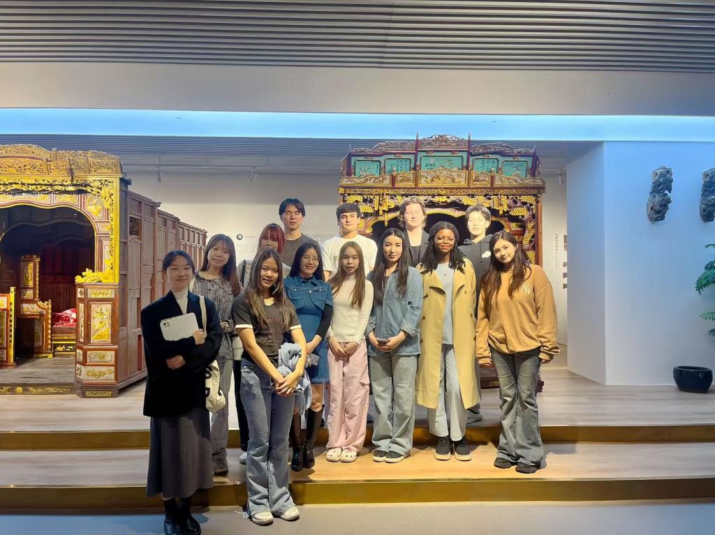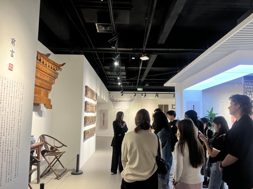 在講解員的帶領(lǐng)下,國際學(xué)生們近距離觀賞了館內(nèi)明清家具、建筑構(gòu)件等珍貴藏品。從細膩的人物雕刻到古樸的吉祥紋樣,每一件展品都生動展現(xiàn)了中國木雕“七分天然、三分雕琢”的藝術(shù)智慧。講解員結(jié)合歷史背景與雕刻技法,深入淺出地講述了木雕藝術(shù)中蘊含的民俗文化與匠人精神,引發(fā)了國際學(xué)生的深深贊嘆。