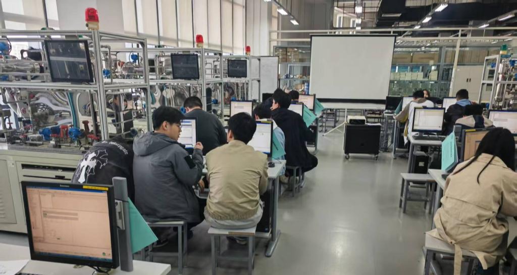 中國(天津)職業(yè)技能公共實訓(xùn)中心作為國家級公共實訓(xùn)基地,依托先進的設(shè)施和產(chǎn)業(yè)化的實訓(xùn)環(huán)境,為能源領(lǐng)域人才培養(yǎng)提供高標(biāo)準(zhǔn)平臺。實習(xí)期間,學(xué)生們在中心導(dǎo)師的指導(dǎo)下,圍繞“能源產(chǎn)業(yè)新技術(shù)開發(fā)與應(yīng)用”主題,分組參與熱工設(shè)備傳感器調(diào)試、工業(yè)機器人編程控制等實踐項目。通過“任務(wù)驅(qū)動+場景化實操”模式,學(xué)生系統(tǒng)掌握了傳感器安裝調(diào)試、系統(tǒng)集成優(yōu)化、編程控制等核心技能,實現(xiàn)了理論知識與工程實踐的無縫銜接。