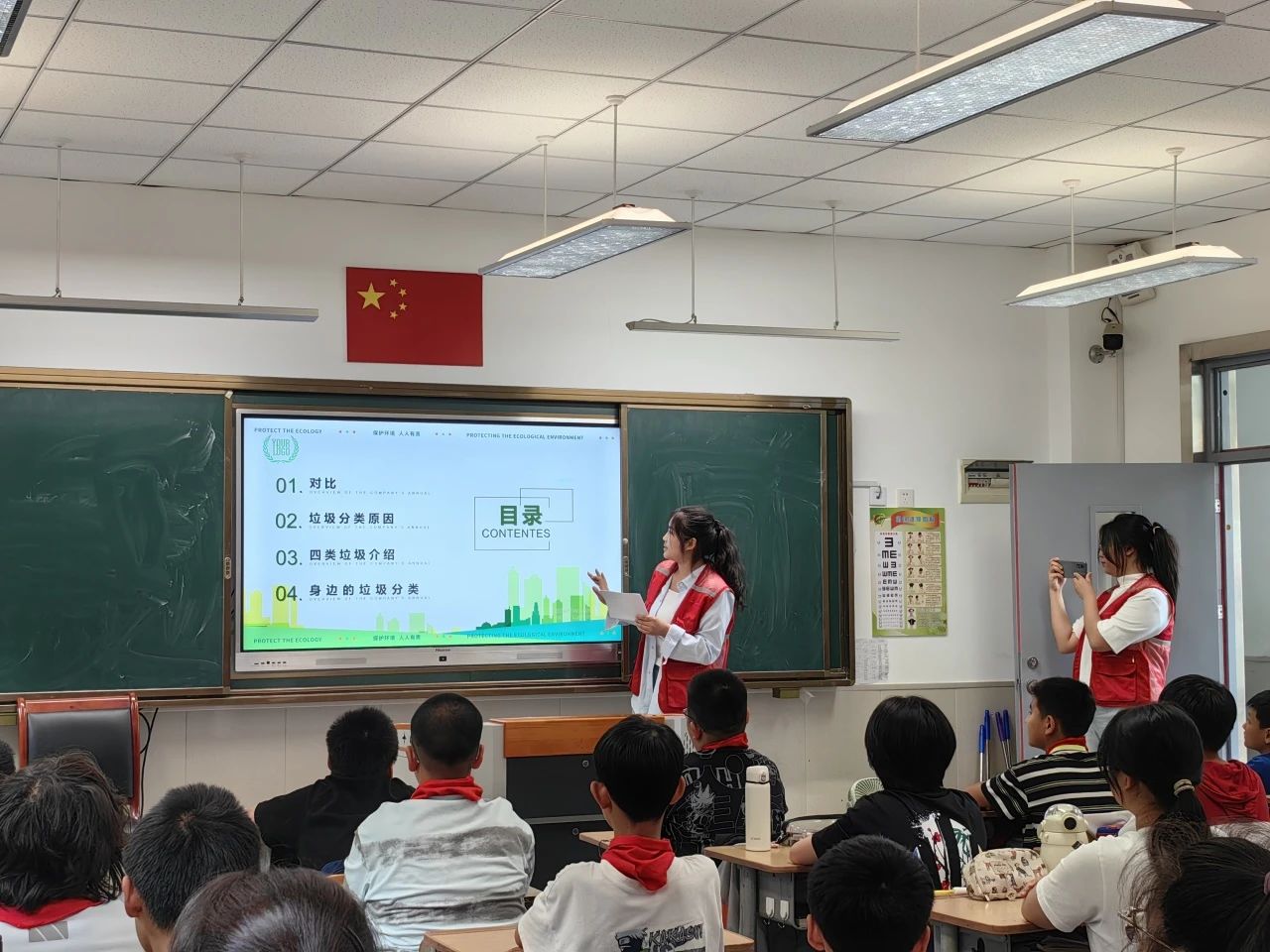志愿者走進(jìn)教室向同學(xué)們?cè)敿?xì)介紹垃圾分類(lèi)的標(biāo)準(zhǔn)、意義和方法,并結(jié)合生活實(shí)例進(jìn)行提問(wèn),引導(dǎo)學(xué)生正確分類(lèi)投放垃圾。通過(guò)耐心講解、趣味引導(dǎo)和貼心服務(wù),使“勞動(dòng)光榮、分類(lèi)先行”的理念深入人心,既培養(yǎng)了孩子們的動(dòng)手能力,更在他們心中播下責(zé)任與擔(dān)當(dāng)?shù)姆N子。