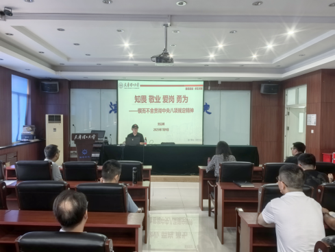 報告會上,馬克思主義學院教師劉云峰結合自身經歷和所思所悟,以《知畏敬業 愛崗勇為——鍥而不舍貫徹中央八項規定精神》為題,從投身學習教育、凝聚挺膺擔當;堅定理想信念、夯實思想武裝;錨定中國式現代化、推動高質量發展;忠誠干凈擔當、敢于善于斗爭等方面進行了深入解讀。報告內容豐富、邏輯性強、與實踐結合緊密。與會人員一致表示,深受啟發、受益匪淺。