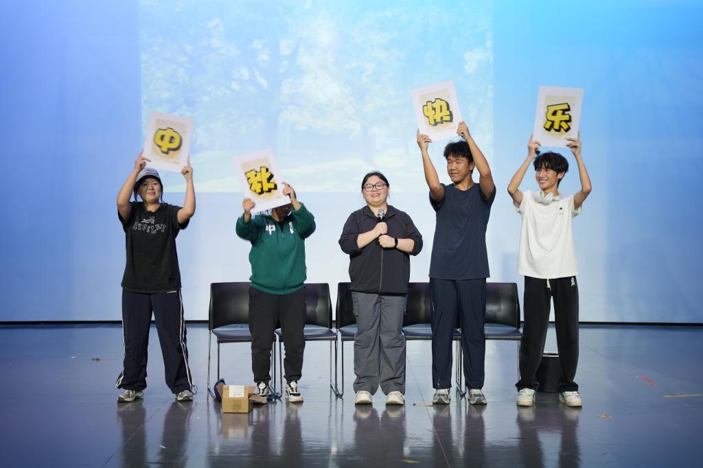 在互動環(huán)節(jié),猜燈謎、送賀卡、玩游戲、吃月餅……將現(xiàn)場氣氛推向高潮,到處洋溢著溫馨祥和的氛圍。一張手寫賀卡、一句感謝的祝福、一塊特制的天理月餅……滿載著學(xué)校對學(xué)生無微不至的關(guān)心,讓在場的學(xué)生感受到如家般的溫暖。