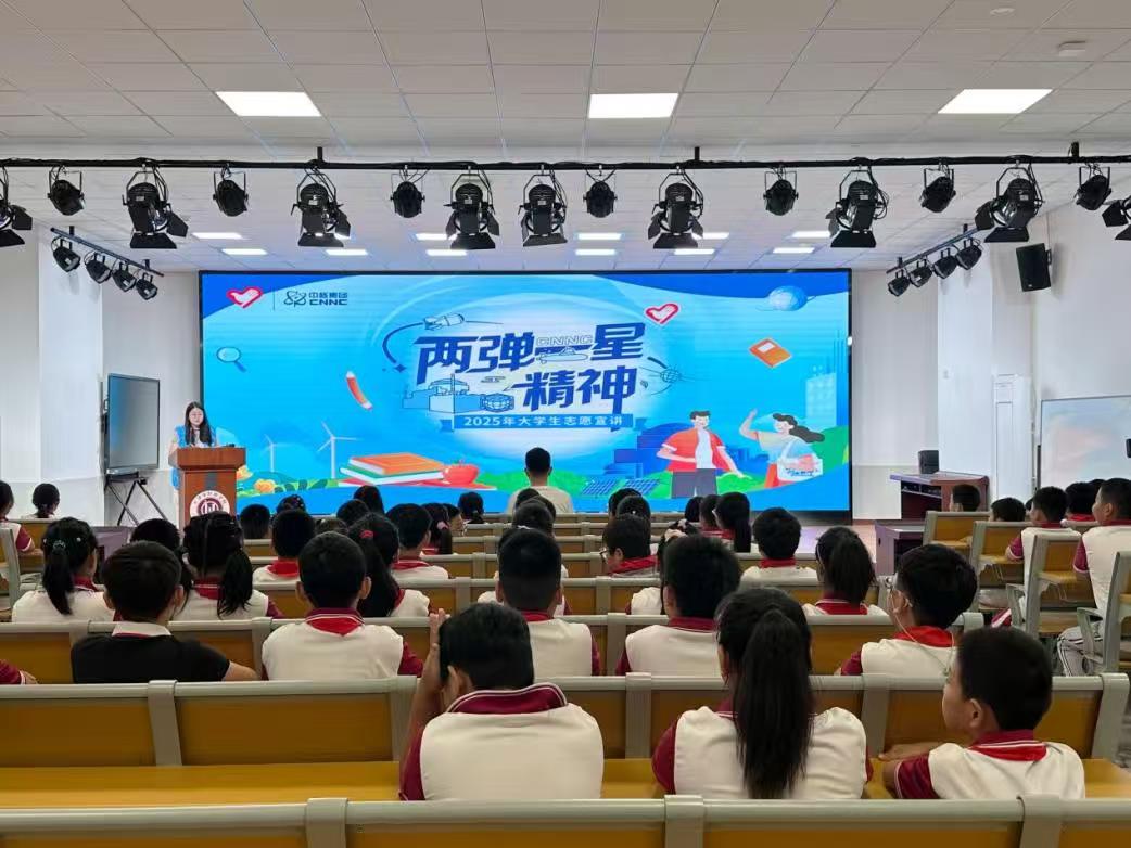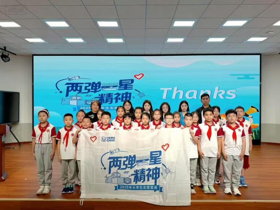 宣講團成員龔華洋、武夢婷在國旗下演講,回顧了我國科學家在艱苦條件下研發“兩彈一星”的先進事跡。呼吁廣大青少年傳承“兩彈一星”精神,爭做新時代追光者。
