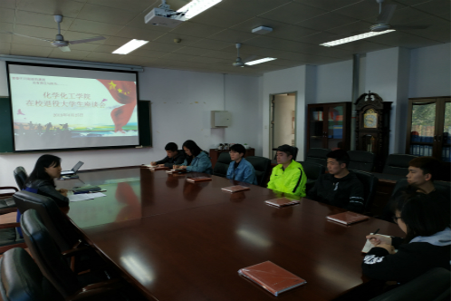 4月25日,化學化工學院召開在校退役大學生座談會,此次座談會以“偉大祖國風雨兼程70載,化院老兵砥礪前行譜新章”為主題。學院相關負責人、輔導員、全體退役大學生參加座談會。