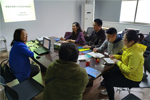 此行共走訪了上海大學美術設計學院、上海大學“大國方略”課程策劃團隊、復旦大學、上海視覺設計學院德稻國際藝術中心、同濟大學等相關單位部門,推廣支部在培育創(chuàng)建全國樣板支部工作中的特色經(jīng)驗,交流相關專業(yè)支部的黨建工作;與“大國方略”課程策劃團隊顧曉英研究員座談藝術類課程思政的運行機制、內(nèi)涵挖掘等內(nèi)容;就專業(yè)建設、教學體系、人才培養(yǎng)模式,設計學術培養(yǎng)等方面進行了參觀學習。