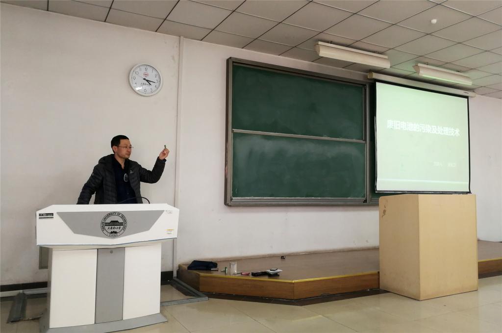 宋大衛(wèi)老師從電池的種類、廢舊電池的污染與危害、廢舊電池的處理再利用等方面為同學(xué)們做了詳細(xì)生動(dòng)、深入淺出的介紹,使同學(xué)們既了解到“電池”這一材料領(lǐng)域重要研究方向的前沿成果,又增強(qiáng)了對(duì)資源、能源可持續(xù)發(fā)展利用的認(rèn)識(shí)。