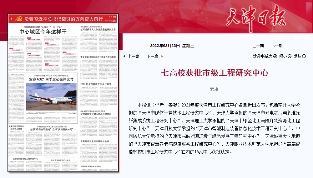 2021年度天津市工程研究中心名單近日發布,包括南開大學承擔的“天津市媒體計算技術工程研究中心”、天津大學承擔的“天津市光電芯片與多維光纖集成系統工程研究中心”、天津理工大學承擔的“天津市綠色化工與廢棄物資源化工程研究中心”、天津科技大學承擔的“天津市智能制造裝備信息化技術工程研究中心”、中國民航大學承擔的“天津市民航能源環境與綠色發展工程研究中心”、天津城建大學承擔的“天津市智慧養老與健康服務工程研究中心”、天津職業技術師范大學承擔的“高端智能數控機床工程研究中心”在內的16家中心獲批認定。