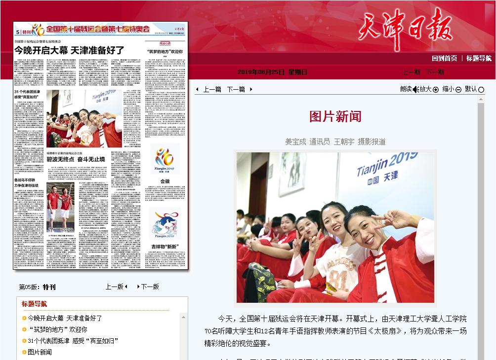 今天,全國第十屆殘運會將在天津開幕。開幕式上,由天津理工大學(xué)聾人工學(xué)院70名聽障大學(xué)生和12名青年手語指揮教師表演的節(jié)目《太極扇》,將為觀眾帶來一場精彩絕倫的視覺盛宴。